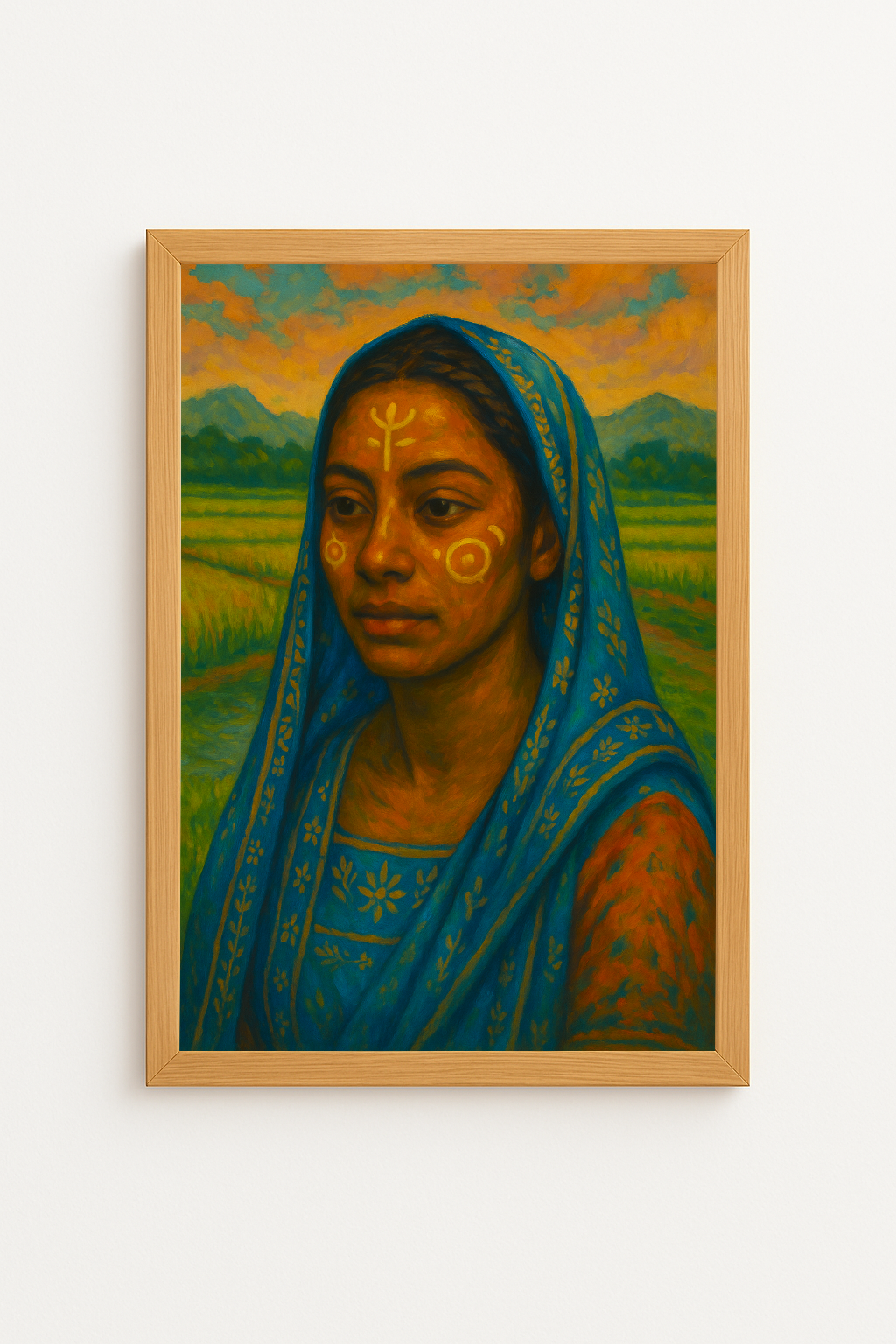 Portrait culturel malgache – Une représentation profonde et respectueuse d’une femme sakalava, peuple du littoral ouest de Madagascar, connue pour ses traditions, son raffinement et son lien spirituel avec la nature.