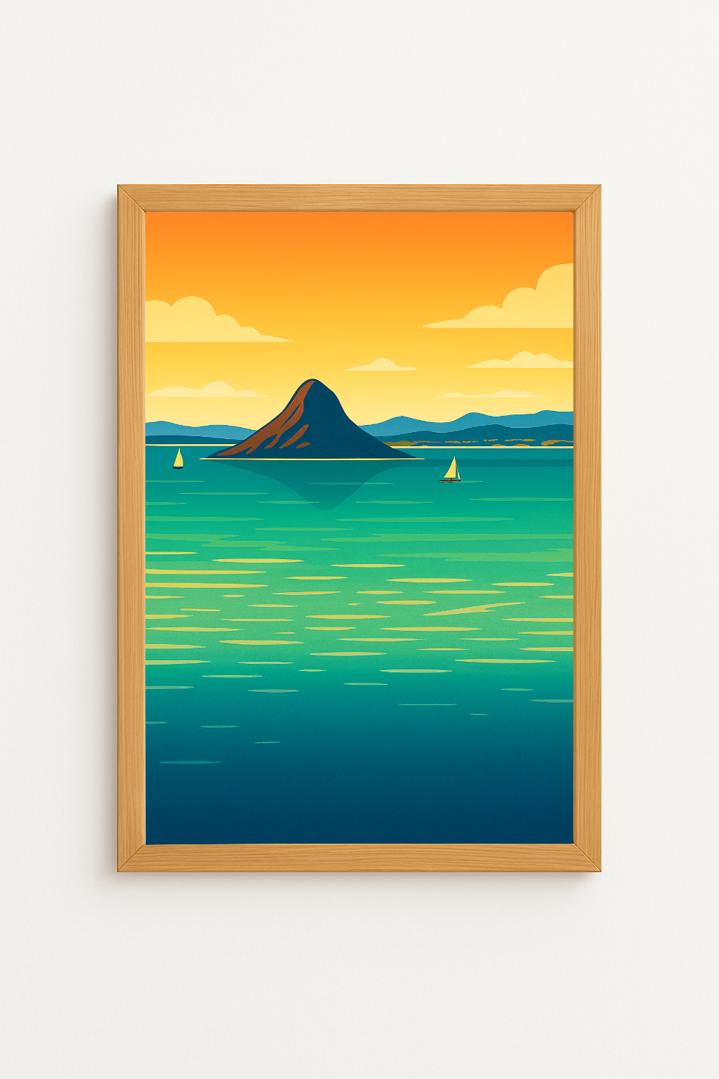 Offrez à votre intérieur une ambiance marine élégante avec cette illustration stylisée du Pain de sucre à Diego Suarez.