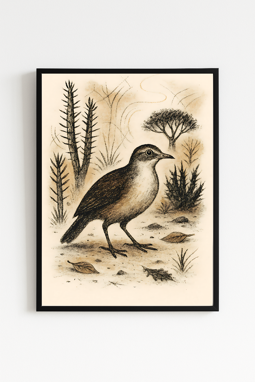 Ajoutez une touche de nature rare et silencieuse à votre intérieur avec cette œuvre au charme épuré, hommage aux oiseaux oubliés de Madagascar.