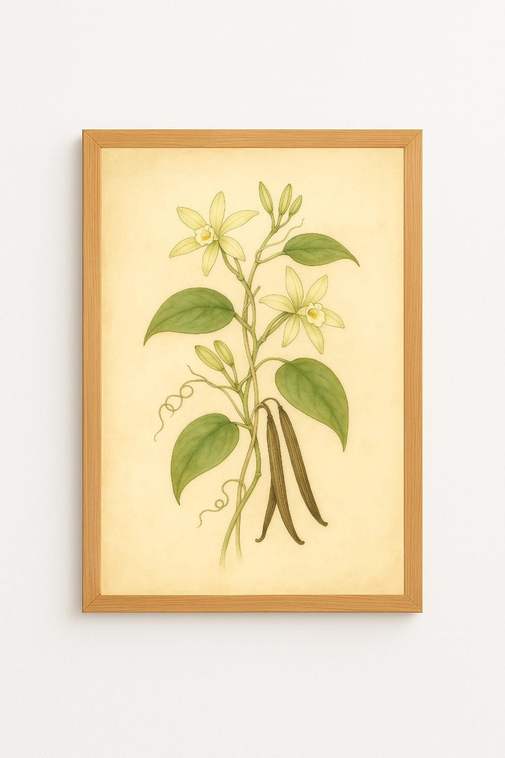 Ajoutez une touche de raffinement et d’exotisme à votre intérieur grâce à cette illustration botanique de la vanille malgache, symbole intemporel de beauté naturelle et d’héritage tropical.
